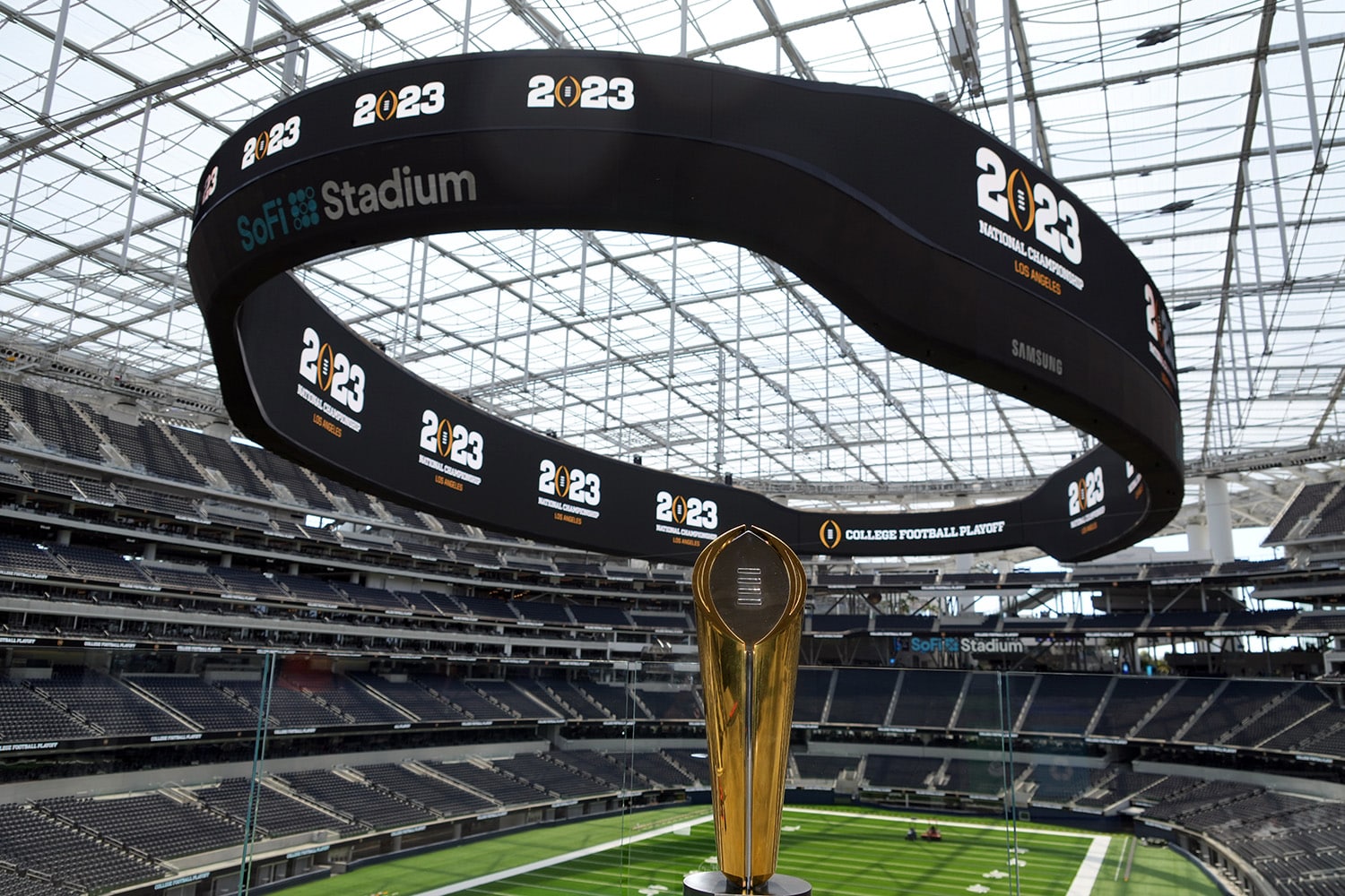 On Monday night, SoFi Stadium will host the 2023 College Football Playoff National Championship between Georgia and TCU, exactly 330 days after hosting Super Bowl LVI.