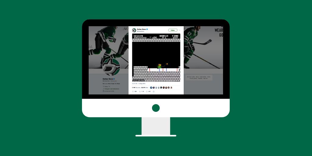 One of these unique ideas was using nostalgia in the form of a Super Mario video to announce Tyler Seguin’s contract extension. To date, the video has over 7,000 retweets, 23,000 likes, and has been viewed over one million times on Twitter alone. While it seems like perfect timing, the stars (pun intended) happened to align perfectly for the content to go viral.