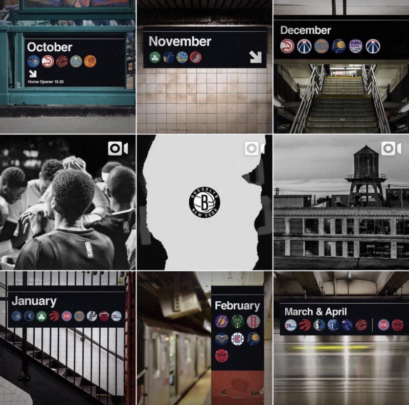 The Brooklyn Nets social media approach to the schedule release works really well aesthetically for a couple of reasons. For one, they embrace their color palette consistently and effectively. They actually manage to make black and white feel unique and authentic.