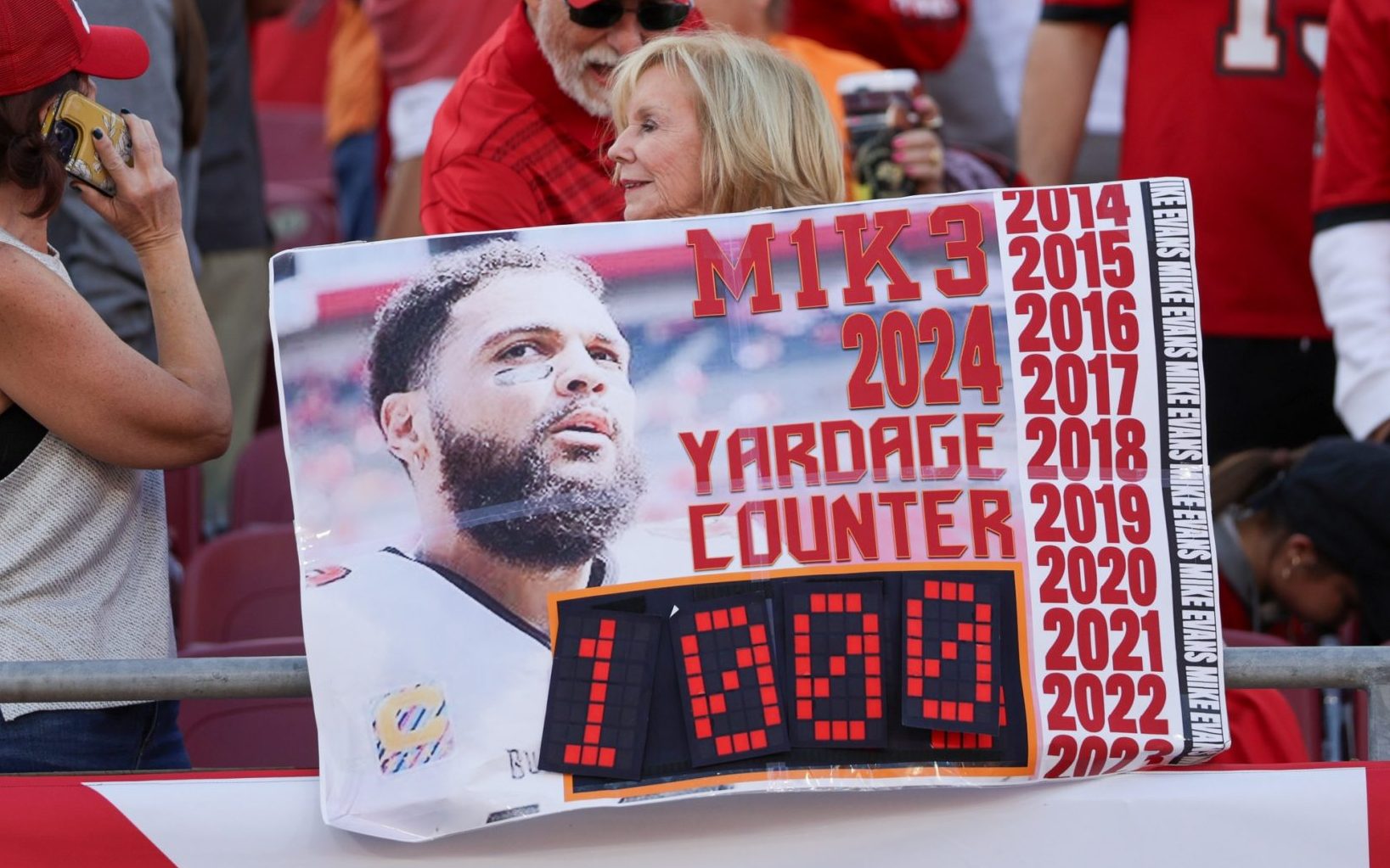 Evans needed five receptions and 85 yards against the Saints to reach his contract incentive (at least 70 receptions and 1,000 yards). The catches came easy—he finished with nine—but it took until the game’s final play to reach the needed yardage mark.
