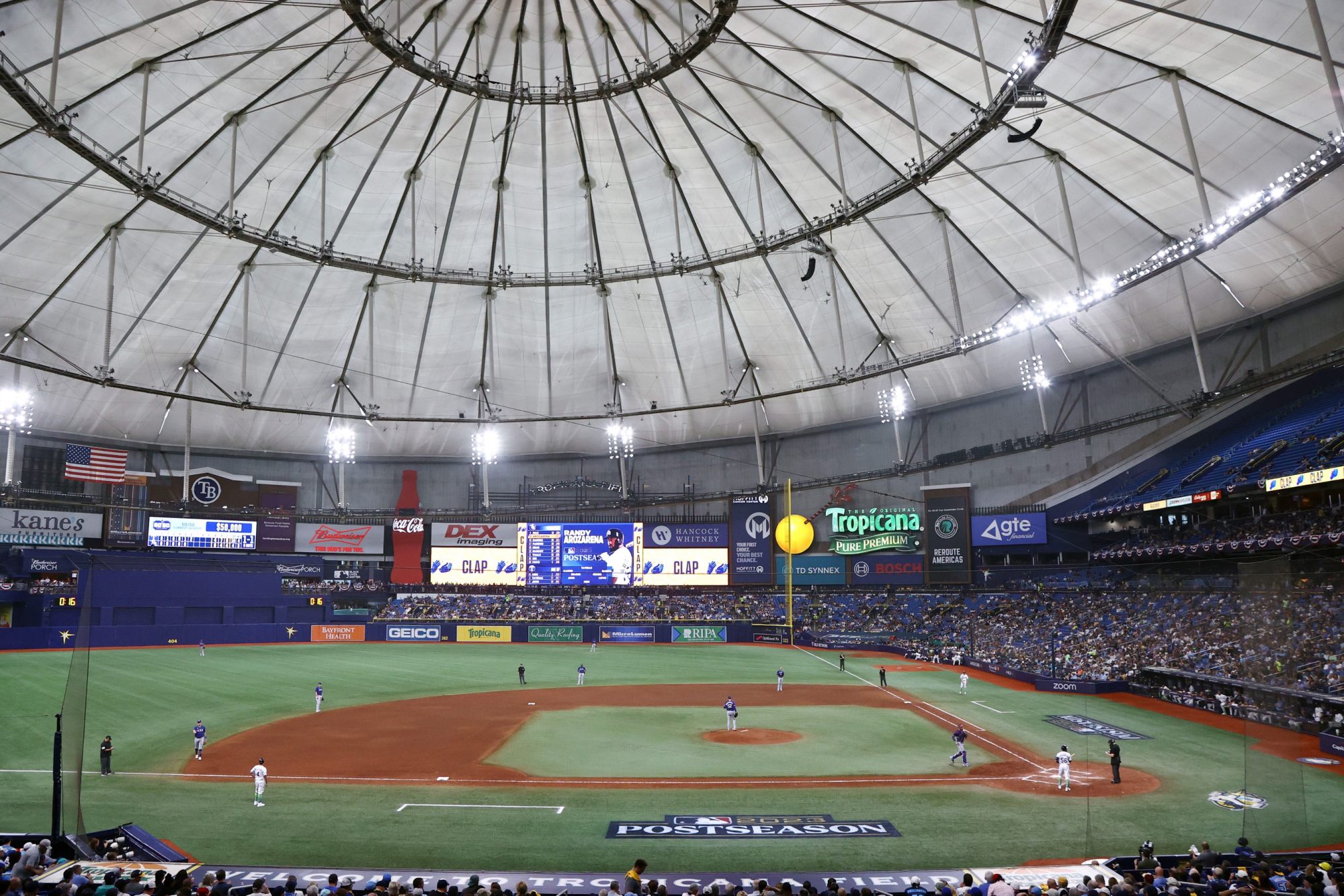 The Rays drew just 19,704 fans to Tropicana Field on Tuesday for their American League Wild Card Series opener against the Texas Rangers — the smallest non-pandemic crowd for an MLB postseason game since the 1919 World Series.