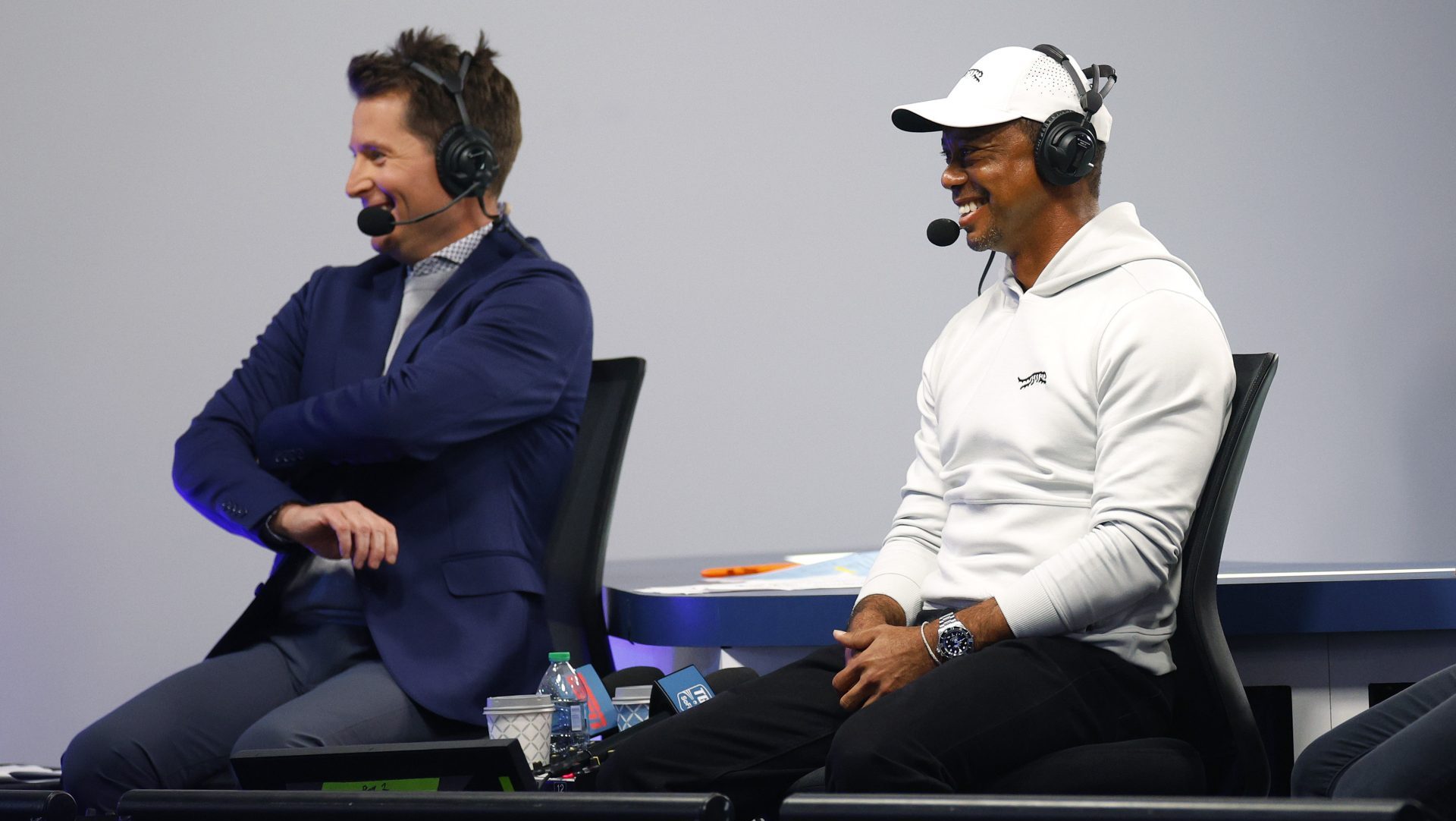 Barrie is able to interact directly with the players, who are all mic’d up, and even Tiger Woods, who hasn’t played for his Jupiter Links Golf Club yet this season due to injury but has still been present at his team’s matches.
