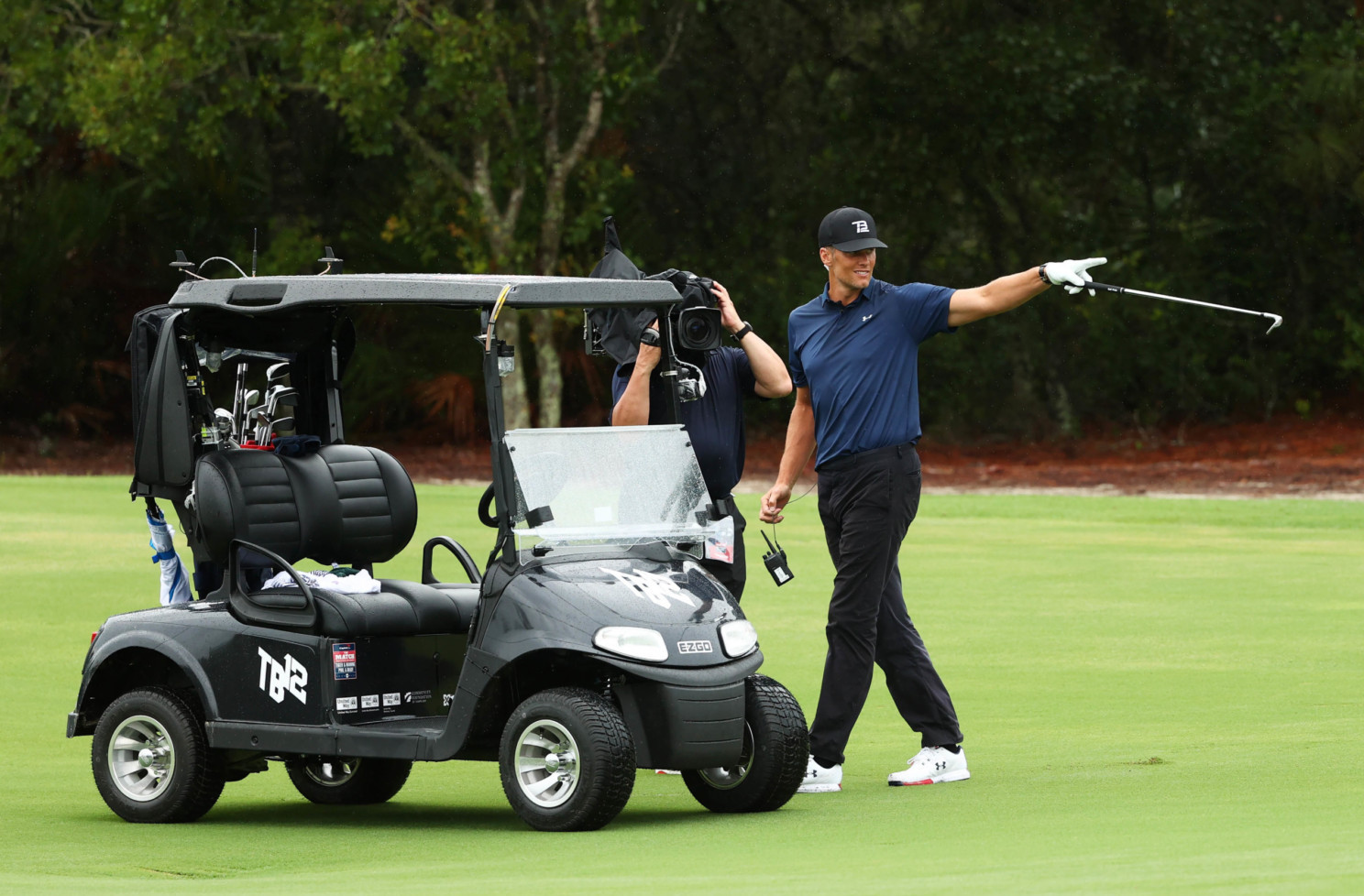 Brady was paired with PGA Tour star Phil Mickelson while Rodgers was with Bryson DeChambeau.