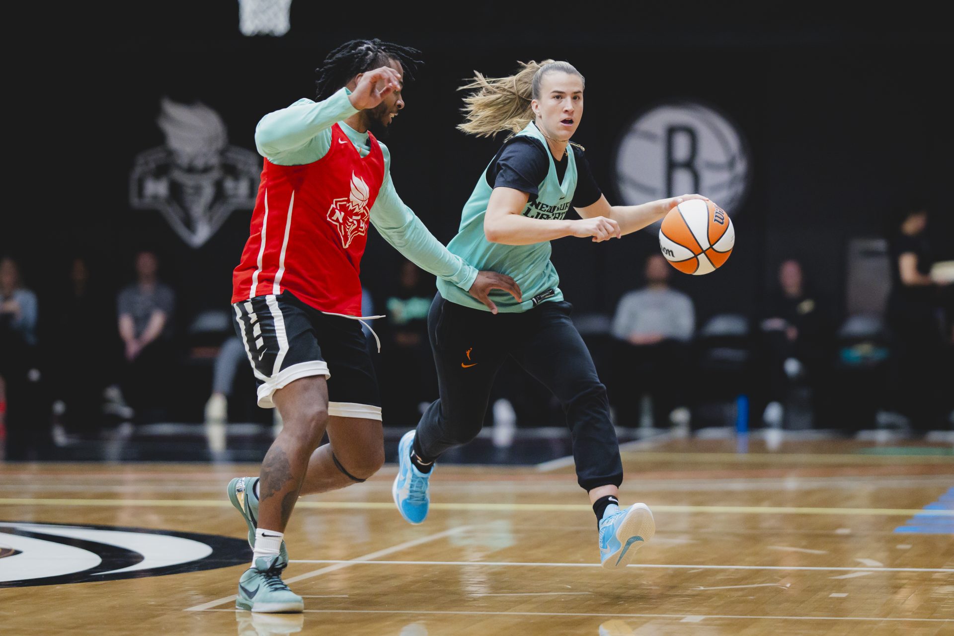 Liberty coach Sandy Brondello tells FOS her ideal practice player “understands the concepts that we’re trying to get. It’s just a little bit of IQ, but some self-control as well knowing that the guys, they’re here for us, not we’re here for them. But at the end of the day we want them to be basketball players.”