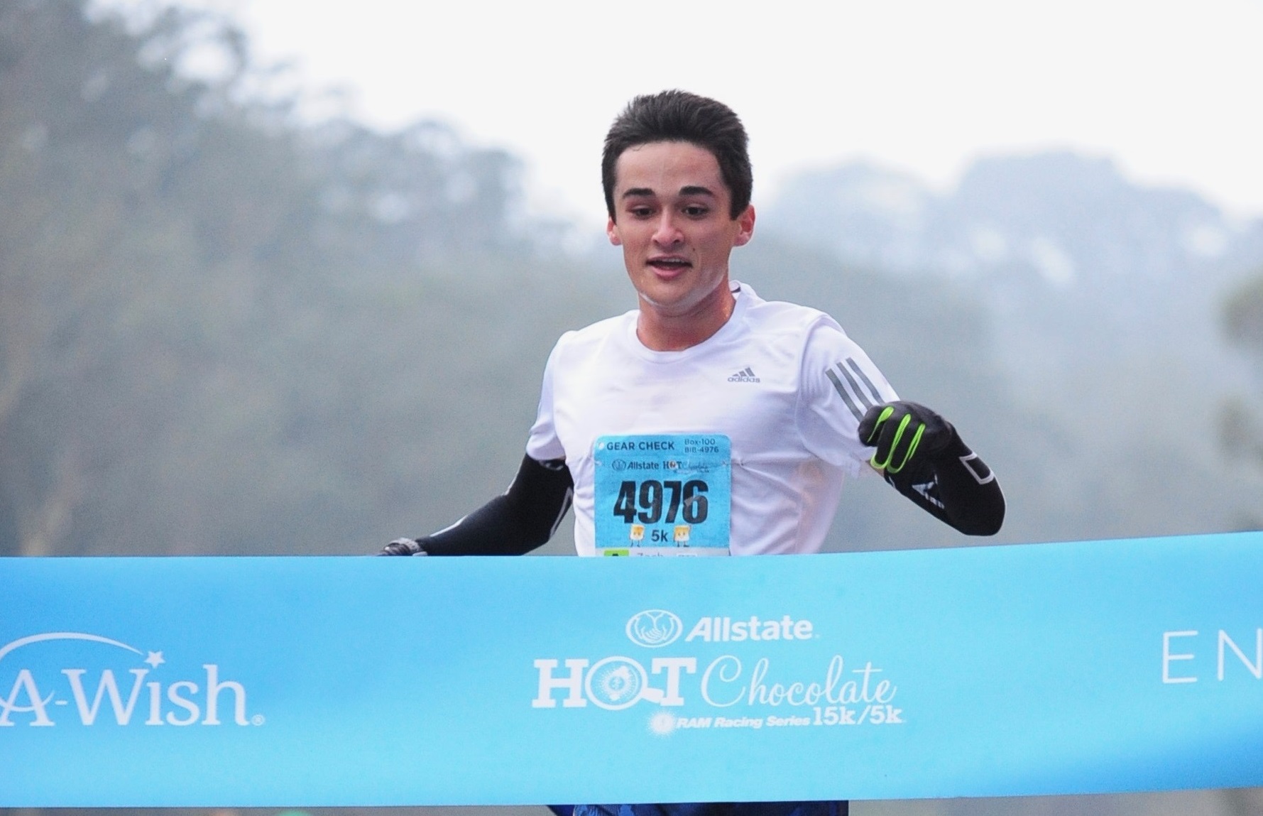 One of the runners crossing the finish line at the Allstate Hot Chocolate 15k (Photo via HotChocolate15k.com)